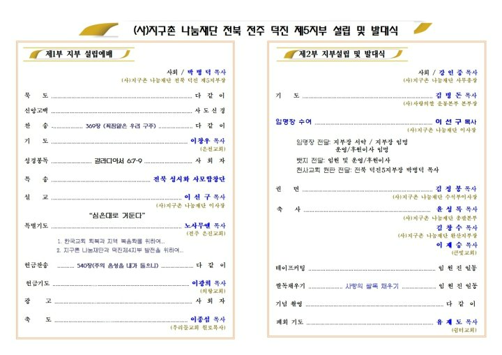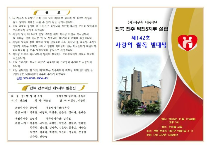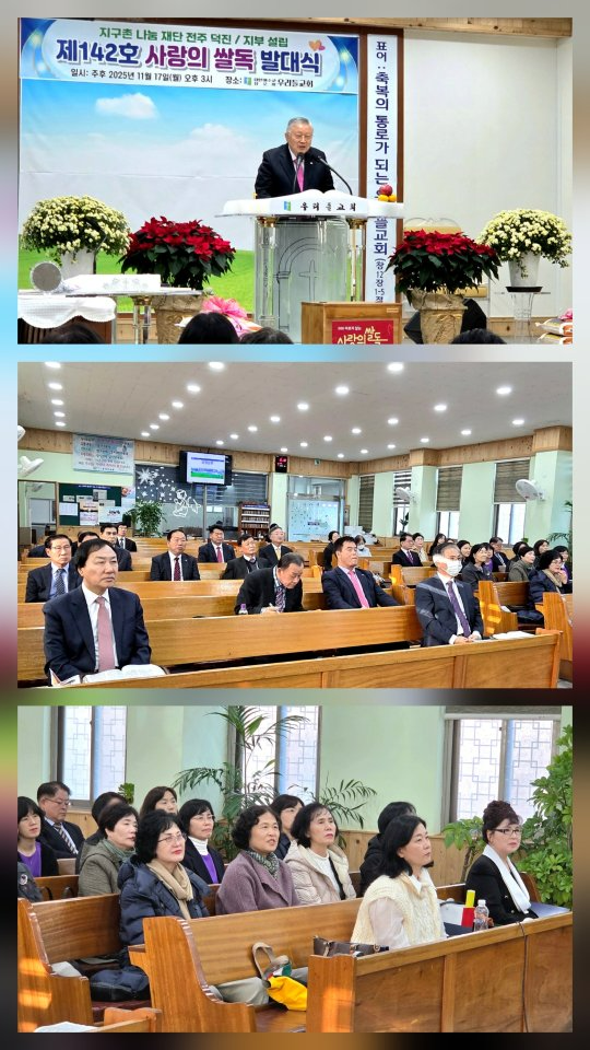 2025. 11. 17 오후3시 전주 덕진 5지부 설립예배를 우리들교회(담임 박병덕목사) 에서 드린후 142호 사랑의쌀독 발대식을 가졌습니다.
